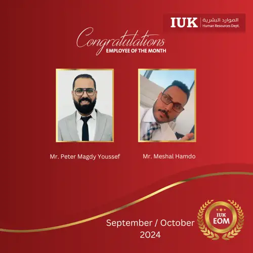 We pride ourselves with hosting a constellation of academic and administrative staff equipped with the knowledge and competencies required to prepare our graduates to future markets and inspire them to succeed in bringing about the welfare and prosperity of the society. The principles and ethical values at IUK are exemplary and actively applied to instill the culture of patriotism and world social responsibility. You will be receiving a great welcome when you visit our campus where you will enjoy the vast vibrant spaces and wealth of facilities varying from state-of-the-art laboratories to extracurricular student clubs and lounges. Our spacious landscape hosts an assortment of areas including sports courts, shaded parking spaces, and green fields in addition to zones allocated for future programs and facility expansions.